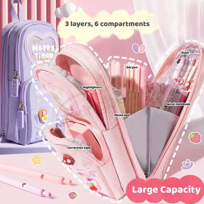 Versatile Design: The cartoon cloth pencil case not only serves as a storage solution for stationery but can also be used as a pen holder or makeup brushes organizer. It offers versatility and functionality for both students and adults.