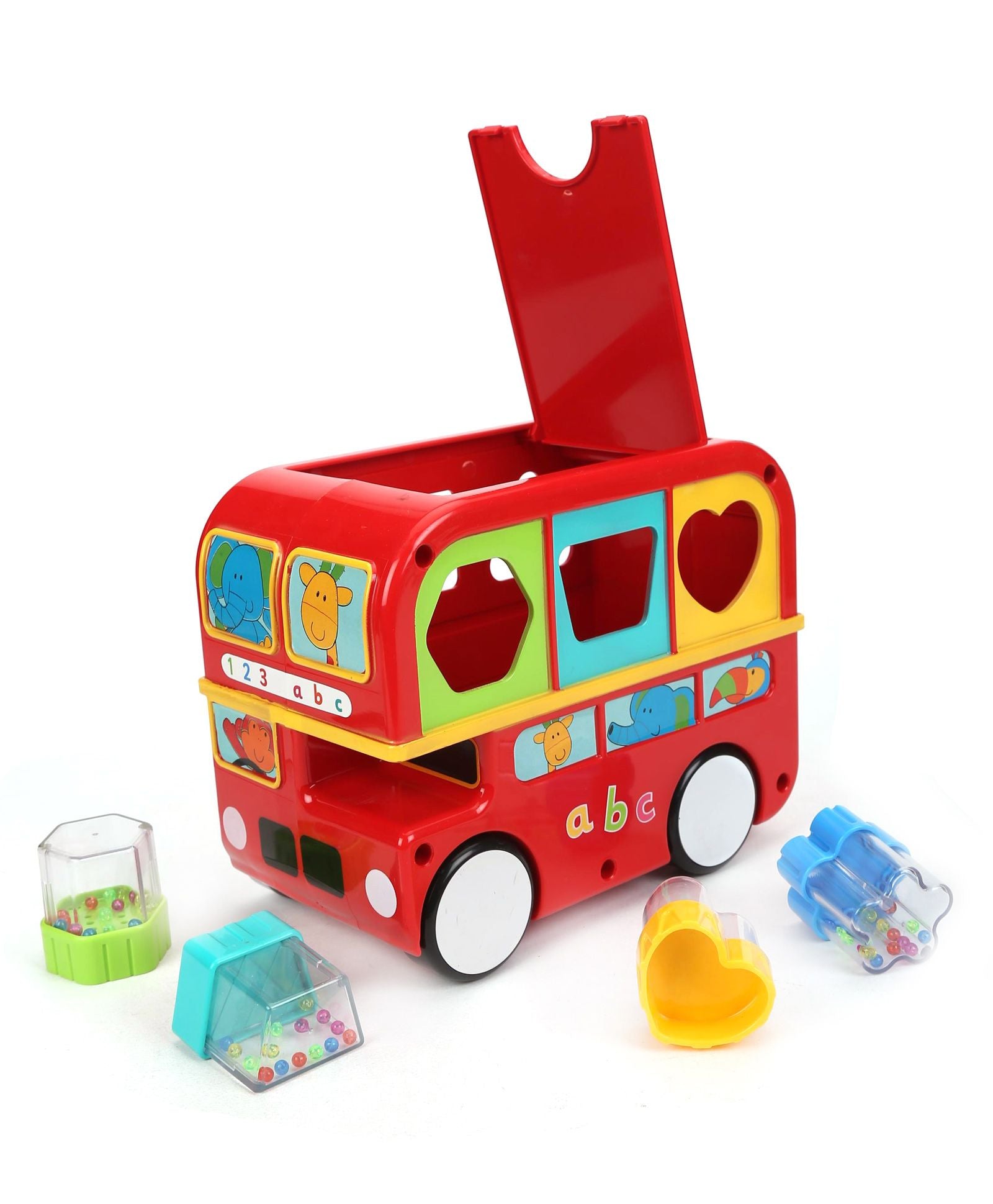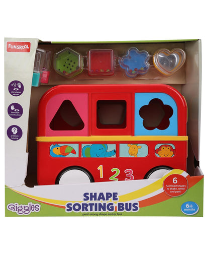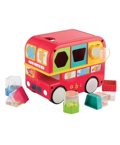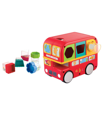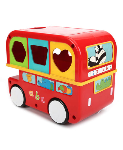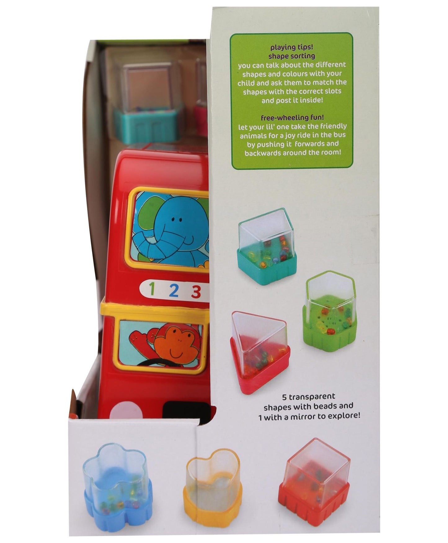 "A two in one play companion for pre-schoolers, As a shape sorter toy, you can talk about different colours and shapes with your child and ask them to match the shapes with the correct slots and post it inside and as a free wheeling toy, let your lil' one take the friendly animals for a joy ride in the bus by pushing it forward and backwards around the room Encourages your child to look, listen and touch Boosts your child's reactions and helps them develop balance and skill encourages child to think creatively. Encourages your child to look, listen and touch Boosts your child's reactions and helps them develop balance and skill Encourages child to think creatively."