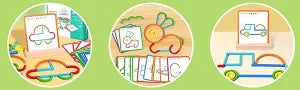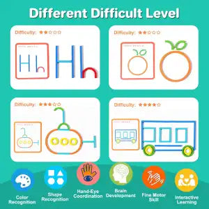 (CREATIVE STICKS AND RINGS)Our construction toy includes 120pcs sticks and rings, 20pcs double-sided cards, 1pcs wooden base, 1pcs storage bag. Building and create letters or patterns with colorful sticks and rings, such as animals vehicles and more. Kids can trying to figure out what pieces make the designs on the cards and create their own design. A great STEM building toy will be favorite gift toys for children.
