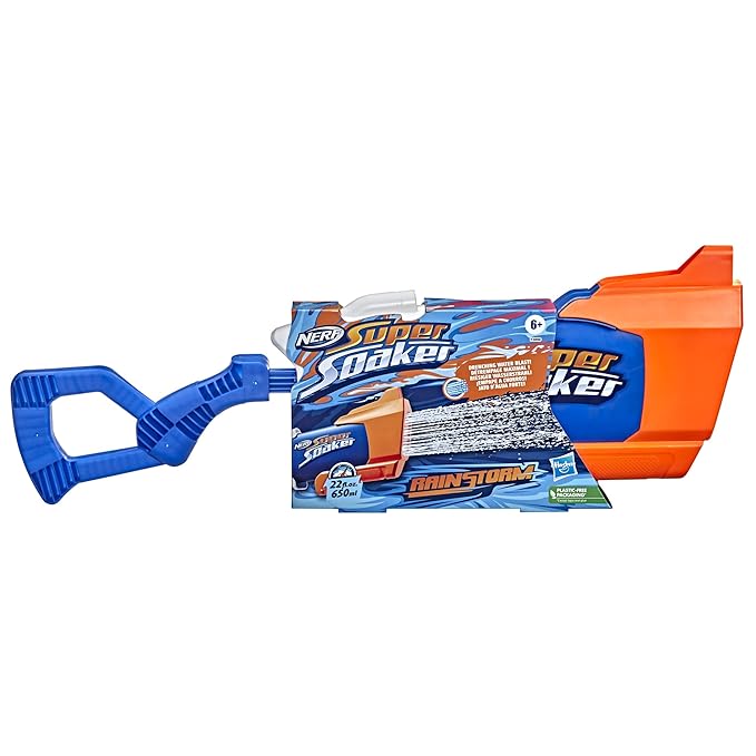 Super Soaker Nerf Rainstorm Water Blaster for Holi - Easy Fill and Blast - Large 650Ml Water Tank - for Drenching Water Blast Games On Holi Festival, Branded Toy Pichkari for Kids 6+