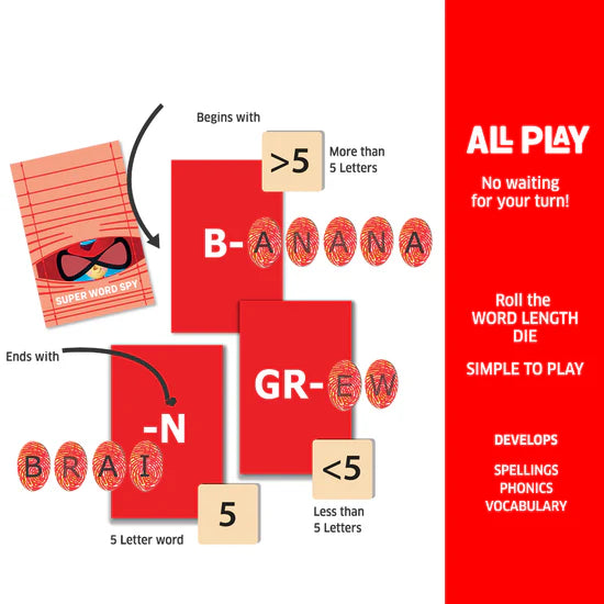 It's a game where you search for letter tiles to form words that match the criteria on the Mission Card. Be the first player to do this and the Card is yours! The first player to collect 5 cards WINS the game.