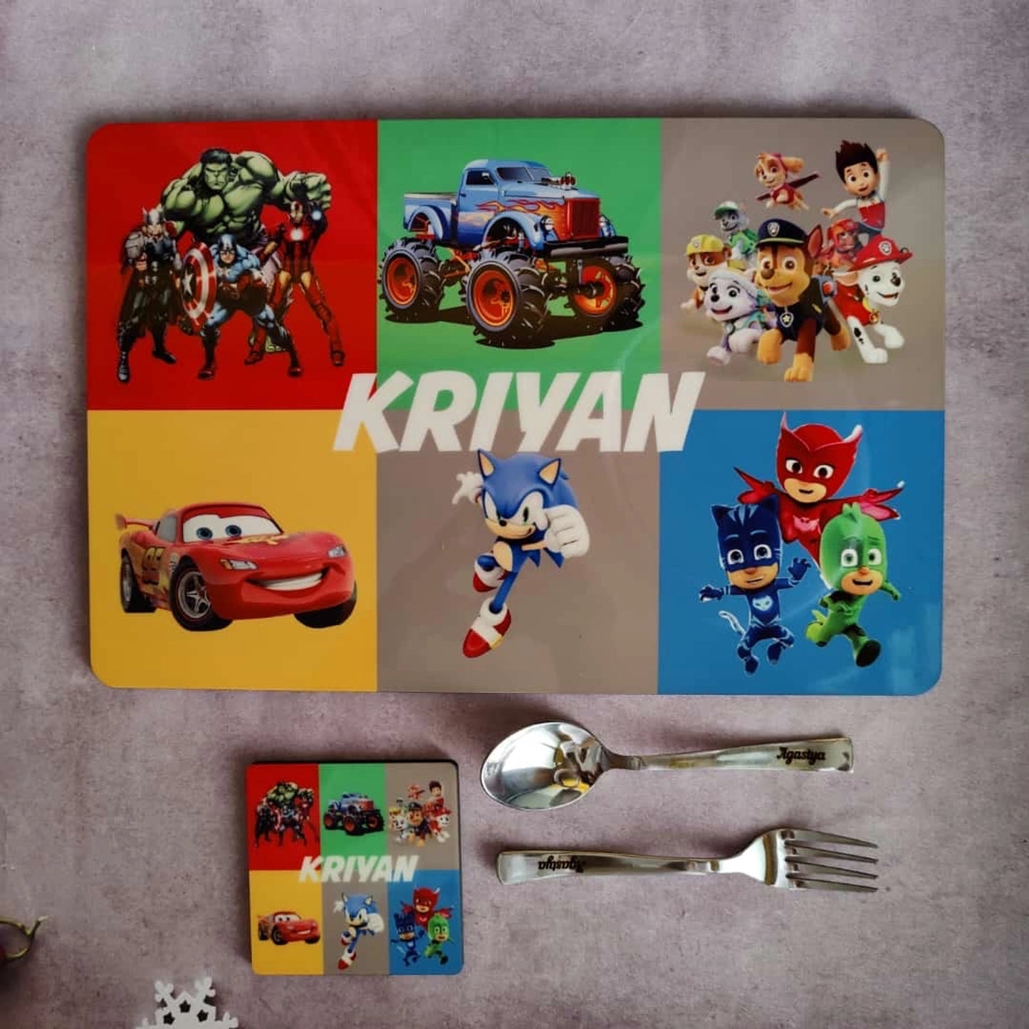 Make mealtime magical with our adorable and fun personalized dinner mat sets combo for kids!