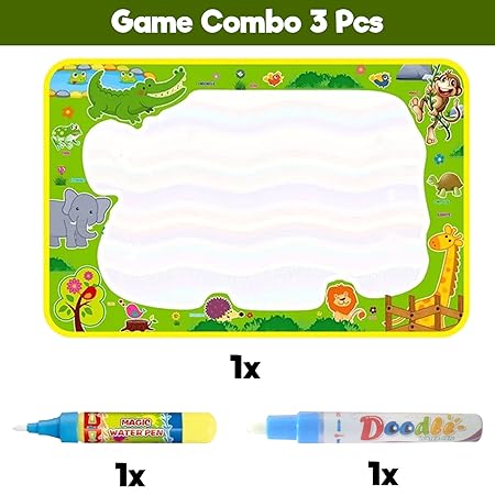 - ENCOURAGE CREATIVE PLAY WITHOUT THE MESS: Spark your child’s creativity with our Water Doodle Mat gift for 3 year old girl and boy Perfectly sized at 71cm x 47cm, this engaging colouring mat comes with water-based pens that ensure fun drawing experiences without any stains on walls or furniture. Each pack includes 1 water doodle mat and 2 magic water pens designed for little hands.
