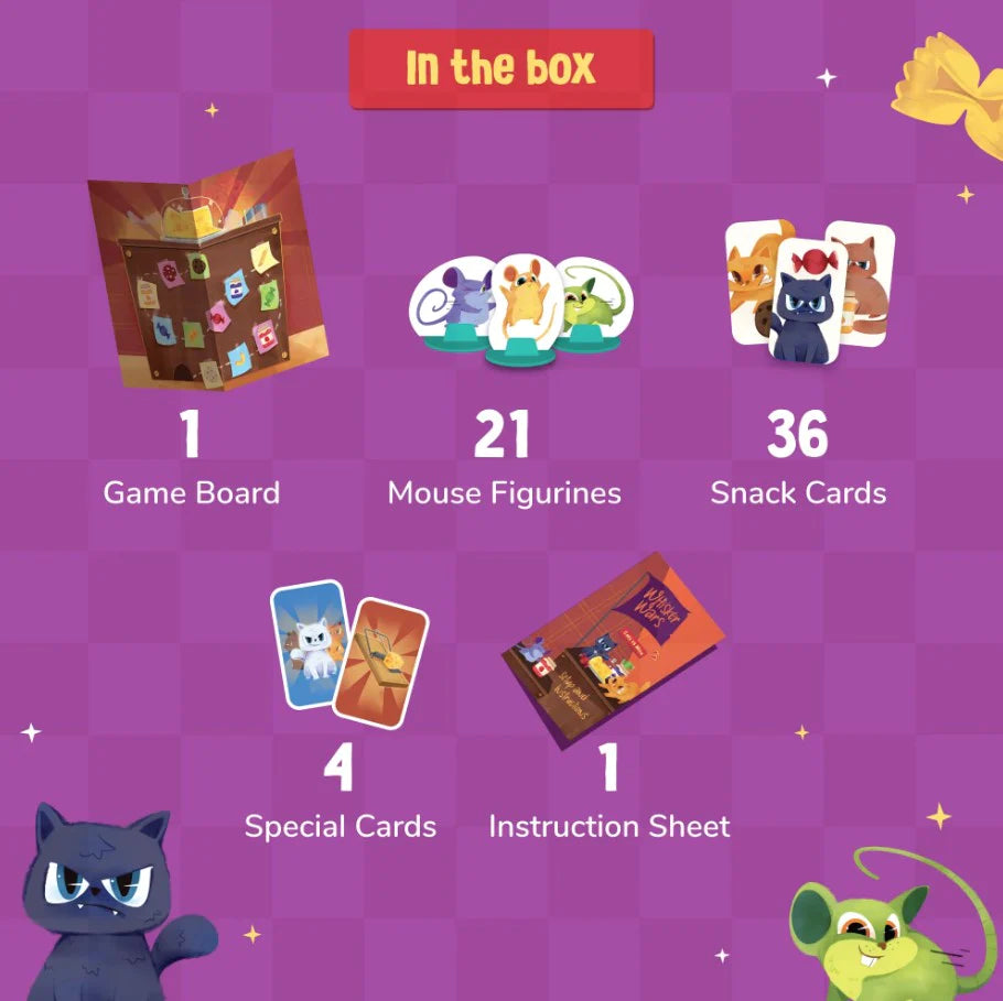 • IN THE BOX - 1 Game board, 21 Mouse figurines, 40 Cards, 1 Instruction sheet.