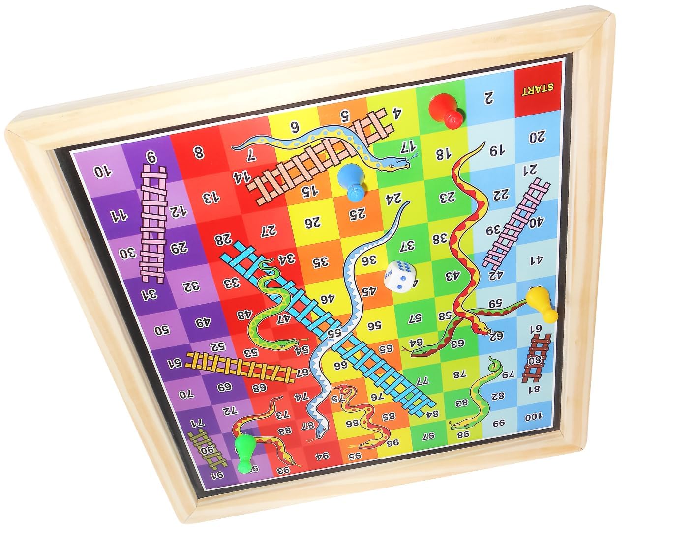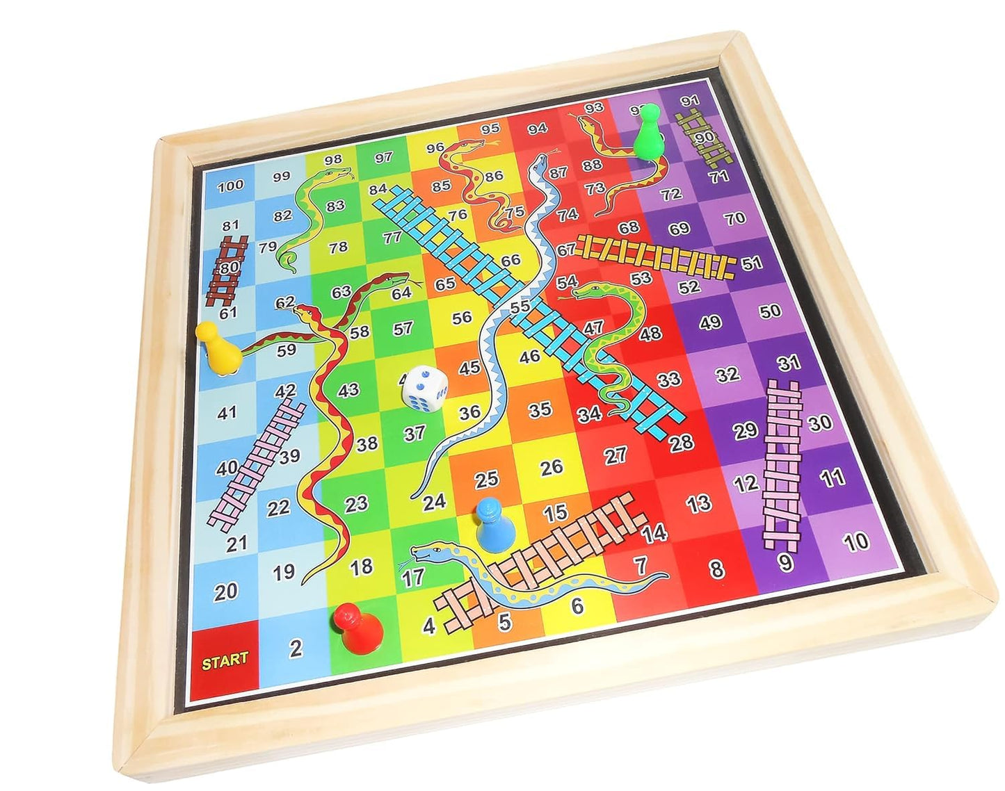 - Combines Ludo and Snakes & Ladders in one durable wooden set