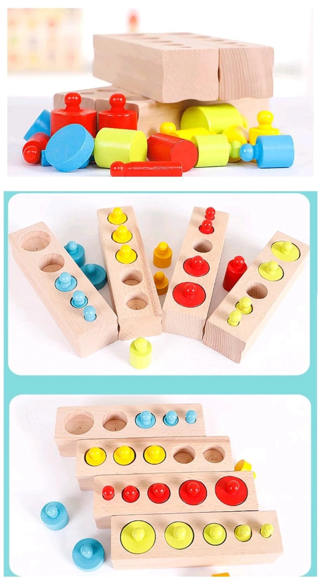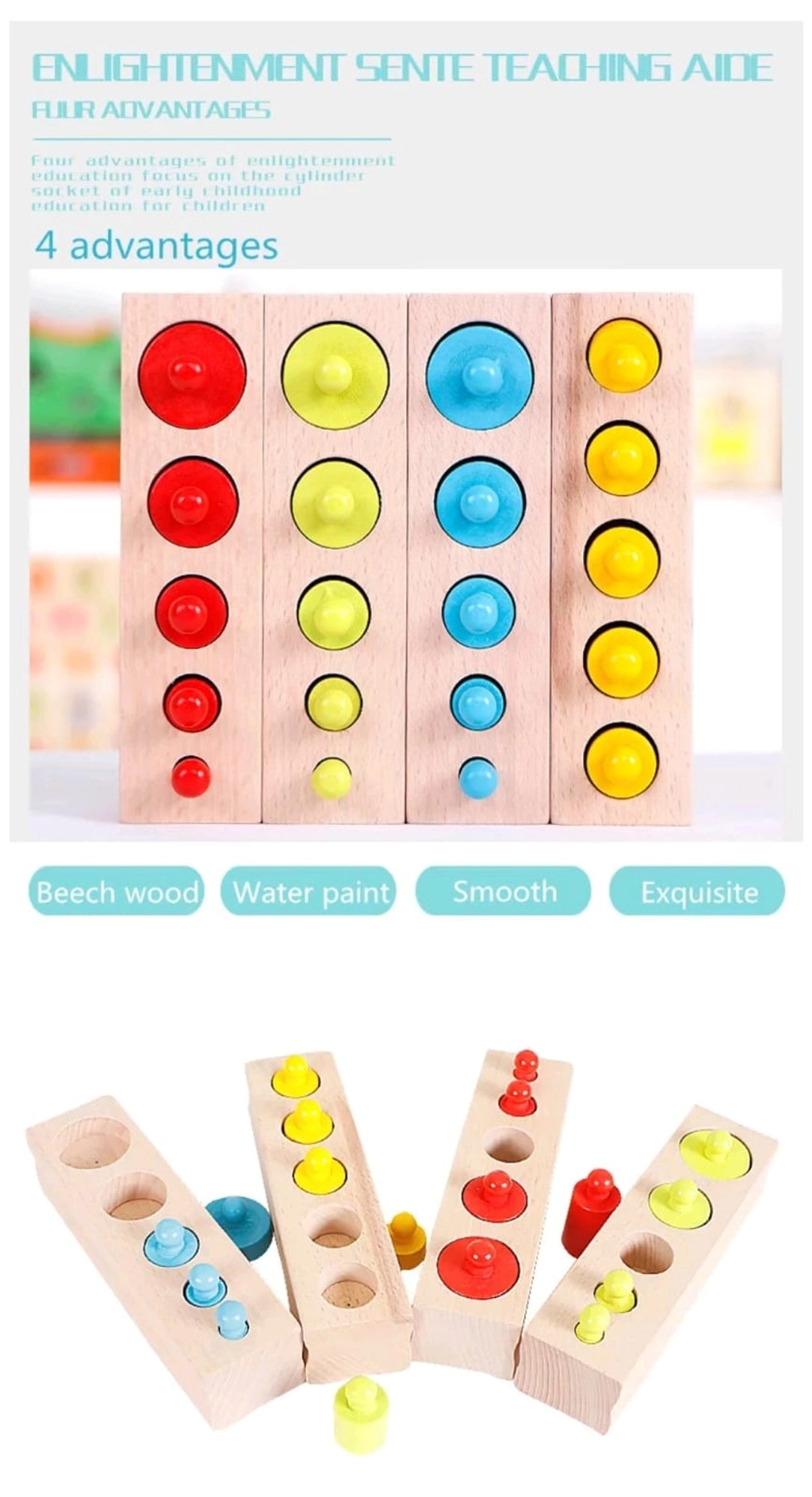 Montessori Knob Cylinders Socket Sensorial Material Wooden Toy